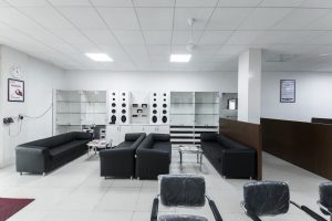 Wiring, internet setup, and power points are essential for office operations.